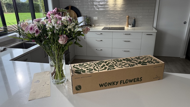 Wonky Flowers works in exactly the same way as the Wonky Box, says Simms. They are a standalone product, and can be chosen on a frequency of weekly, fortnightly or three-weekly, with options to skip weeks as needed. For $52, the box arrives direct from Burwood Nurseries on either Thursday or Friday, depending on your postcode, with 17 seasonal stems, flower food and tips on how to arrange them.