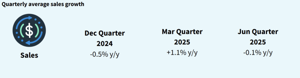 These results are well behind the long-term national average of 6.3% y/y (Jan 2017 – Jun 2025). It’s also a step behind Australia’s 3.0% sales growth in the June quarter.